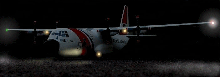 Positionslichter und Landescheinwerfer ausgestattet, die über